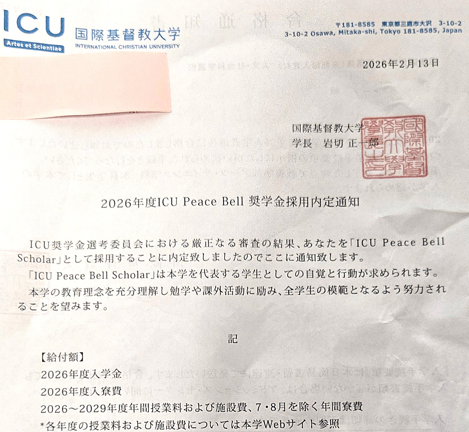 ――ICU 合格と学費寮費全額免除のPeace Bell内定を知ったときのことを聞かせてください。